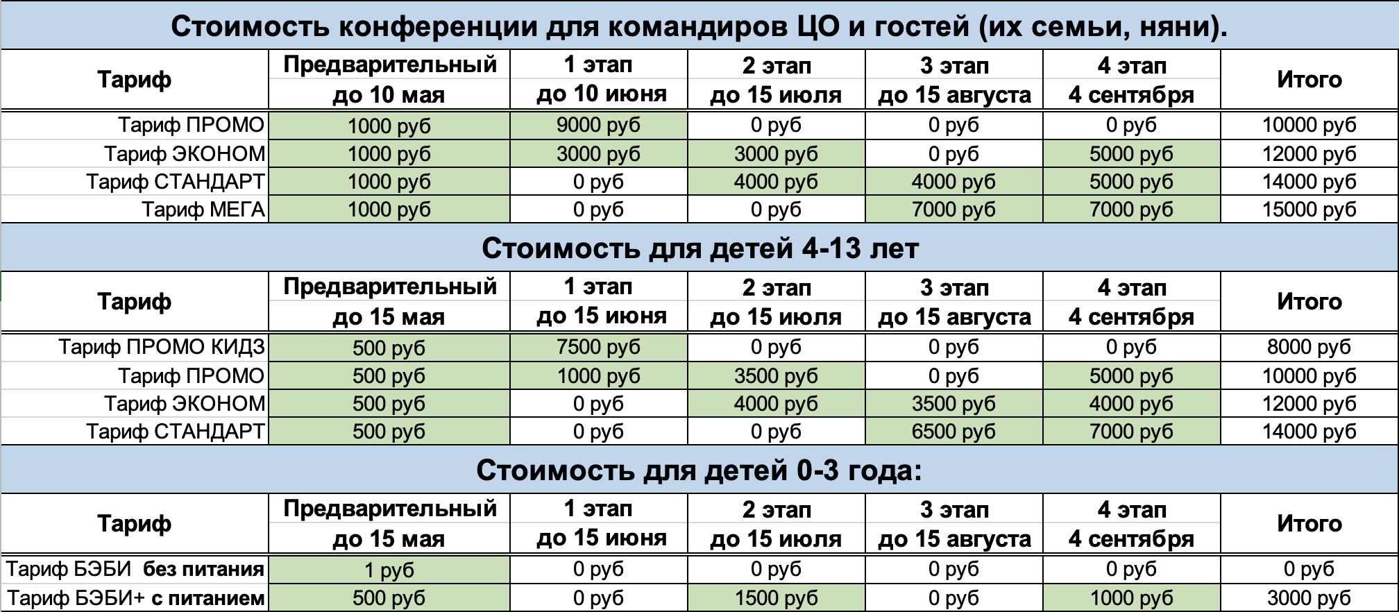 Отличие тарифов заключается только в графике внесения добровольных пожертвований, во всех тарифах условия проживания одинаковые
